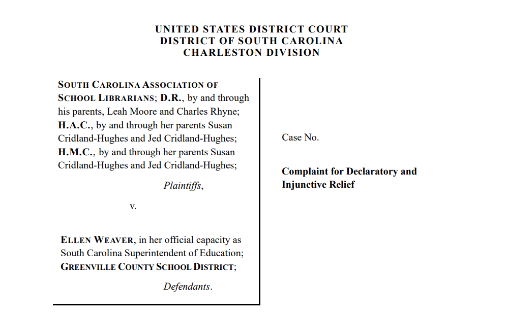 In a suit filed on October 7, SCASL and three unnamed students are the plaintiffs in a case against South Carolina Superintendent of Education Ellen Weaver and the Greenville County School District.