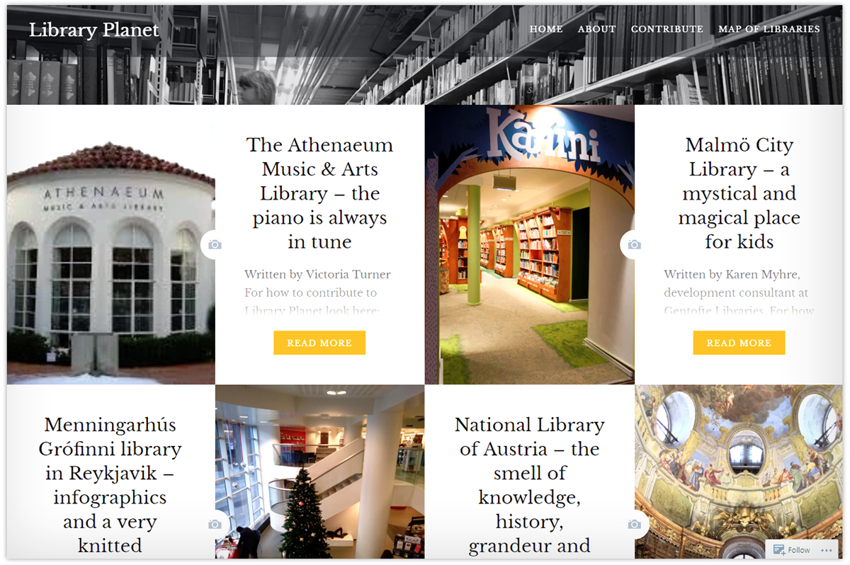 “We would love to have some contributions from the U.S. and Canada, but also, South America and Africa are very high on our wish list,” Lauersen wrote. “We are looking for posts about all types of libraries. National libraries, special libraries, public libraries, and school libraries. From the fantastic, grand, impressive kind to the small, personal, community hub.”