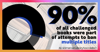 Book Challenges Nearly Doubled From 2021 CHICAGO — The American Library Association (ALA) today released new data documenting* 1,269 demands to censor library books and resources in 2022, the highest number of attempted book bans since ALA began compiling data about censorship in libraries more than 20 years ago. The unparalleled number of reported book challenges in 2022 nearly doubles the 729 challenges reported in 2021. A record 2,571 unique titles were targeted for censorship, a 38% increase from the 1,858 unique titles targeted for censorship in 2021. Of those titles, the vast majority were written by or about members of the LGBTQIA+ community and people of color. Of the reported book challenges, 58% targeted books and materials in school libraries, classroom libraries or school curricula; 41% of book challenges targeted materials in public libraries. The prevalent use of lists of books compiled by organized censorship groups contributed significantly to the skyrocketing number of challenges and the frequency with which each title was challenged. Of the overall number of books challenged, 90% were part of attempts to censor multiple titles. Of the books challenged, 40% were in cases involving 100 or more books. Prior to 2021, the vast majority of challenges to library resources only sought to remove or restrict access to a single book. “A book challenge is a demand to remove a book from a library’s collection so that no one else can read it. Overwhelmingly, we’re seeing these challenges come from organized censorship groups that target local library board meetings to demand removal of a long list of books they share on social media,” said Deborah Caldwell-Stone, director of ALA’s Office for Intellectual Freedom. “Their aim is to suppress the voices of those traditionally excluded from our nation’s conversations, such as people in the LGBTQIA+ community or people of color. “Each attempt to ban a book by one of these groups represents a direct attack on every person’s constitutionally protected right to freely choose what books to read and what ideas to explore,” said Caldwell-Stone. "The choice of what to read must be left to the reader or, in the case of children, to parents. That choice does not belong to self-appointed book police.” ALA will unveil its highly anticipated list of the top 10 most challenged books in the U.S. on Monday, April 24 during National Library Week, along with its full State of America's Libraries Report. The theme of National Library Week 2023, There's More to the Story, focuses on the essential services and programming that libraries offer through and beyond books. ALA President Lessa Kanani'opua Pelayo-Lozada said, “Every day professional librarians sit down with parents to thoughtfully determine what reading material is best suited for their child’s needs. Now, many library workers face threats to their employment, their personal safety, and in some cases, threats of prosecution for providing books to youth they and their parents want to read. “ALA began documenting the book challenges reported to us over two decades ago because we want to shine a light on the threat of censorship facing readers and entire communities. Book challenges distract from the core mission of libraries: to provide access to information. That includes access to information and services for learners of all ages, homeschooling parents, job seekers, new computer users, budding readers, entrepreneurs, veterans, tax filers and amateur genealogists – just to name a few. “While a vocal minority stokes the flames of controversy around books, the vast majority of people across the nation are using life-changing services that public and school libraries offer. Our nation cannot afford to lose the library workers who lift up their communities and safeguard our First Amendment freedom to read.” Polling conducted by bipartisan research firms in 2022 showed that voters across the political spectrum oppose efforts to remove books from libraries and have confidence in libraries to make good decisions about their collections. To galvanize support for libraries and respond to the surge in book challenges and other efforts to suppress access to information, in 2022 ALA launched Unite Against Book Bans, a national initiative to empower readers everywhere to stand together in the fight against censorship. The coalition will mark its first anniversary during National Library Week. *ALA compiles data on book challenges from reports filed with its Office for Intellectual Freedom by library professionals in the field and from news stories published throughout the United States. Because many book challenges are not reported to the ALA or covered by the press, the 2022 data compiled by ALA represents only a snapshot of book censorship throughout the year. A challenge to a book may be resolved in favor of retaining the book in the collection, or it can result in a book being restricted or withdrawn from the library. |