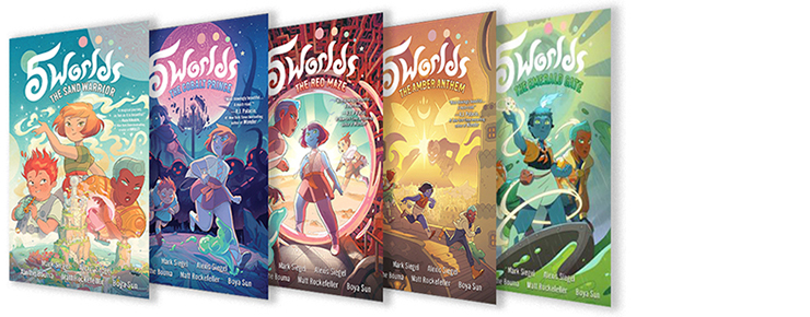 If there’s a theme that ties these two projects—middle grade fantasy and civics education—together, it’s the desire to look beneath the surface and ask difficult questions. The fourth volume of “5 Worlds,” titled The Amber Anthem, came out in May. I spoke to Siegel about his quest to build a better world through comics.