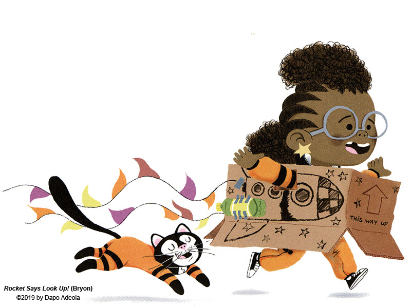 Bryon, Nathan. Rocket Says Look Up! illus. by Dapo Adeola. Random. Jun. 2019. p. 60.