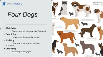 “There are four roles that a coalition has to play,” said Chrastka, who has created the Four Dogs of Book Ban Advocacy to make it easier to remember.
