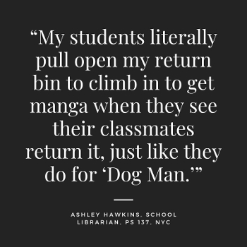 — Stephine Brentson, Facebook, on “There’s Not Enough Middle Grade Manga. U.S. Publishers Are Changing That.” by Brigid Alverson.