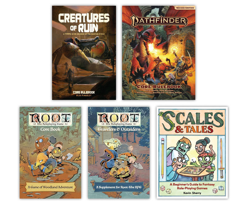 We are living through a tabletop role-playing game (TTRPG) renaissance! Game publishers and educators alike realize that people of all ages benefit from games, resulting in new and exciting titles being created and introduced in classrooms and libraries. This TTRPG roundup is all about fantasy, where players can take on the roles of adorable animals and outlandish creatures fighting injustice and tyranny, or dive into a post-apocalyptic world where teamwork is the key to defeating giant crabs and saving the day.