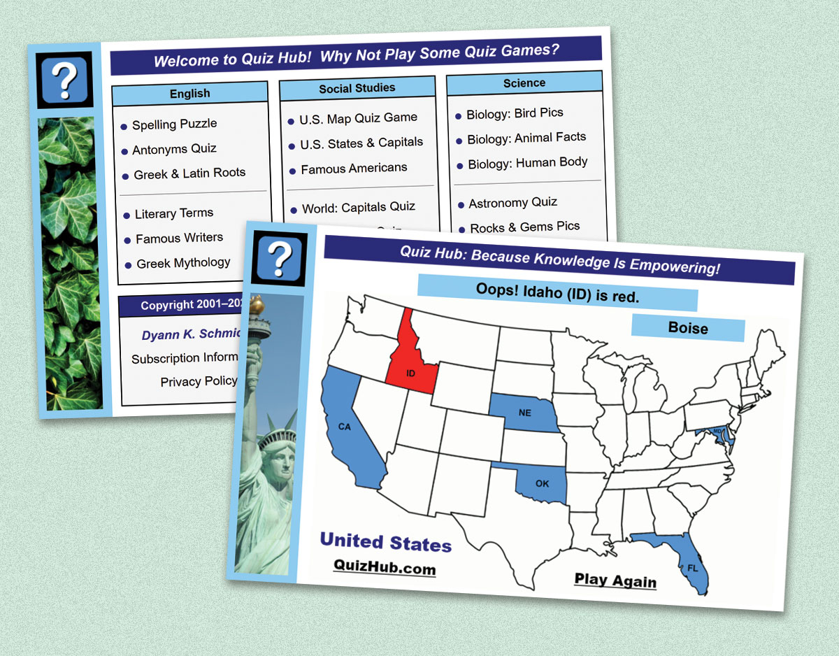 QuizHub is a digital quiz platform that provides rapid reinforcement of core subjects for elementary students with a variety of quick, matching-style quizzes.
