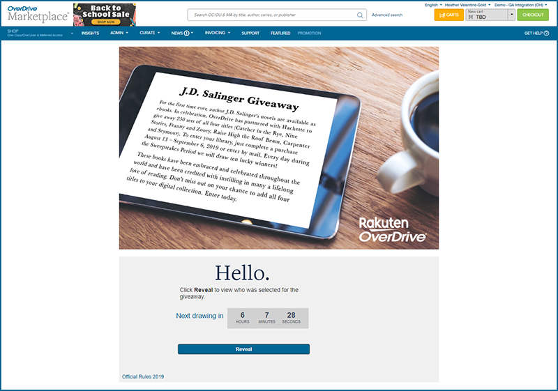In addition, 1,000 copies of the newly available Salinger titles will be given away to public libraries in North America via an OverDrive sweepstakes campaign.