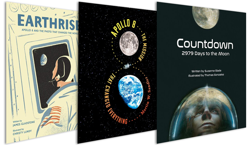 The 1968 Apollo 8 mission is often eclipsed by the July 1969 Apollo 11 moon landing. But the Apollo 8 flight was notable for several reasons: it was the first mission to leave Earth’s orbit and travel around the “dark side” of moon (losing communication with NASA for 36 tense minutes), and for its crew’s December 24th broadcast of a reading from the Book of Genesis. However, it's probably best known for the “Earthrise” photo, the first image of our planet from space, which sent a powerful environmental message to humankind and is credited with the impetus for the annual Earth Day celebrations around the globe. This trio of books offer looks at that significant flight.