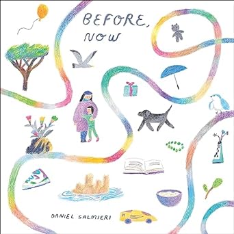 K-Gr 2–Salmieri follows a woman’s life, from her toddler years to her senior ones, as she holds her grandson on her knees, showing him a picture of her younger self about to eat oatmeal in a highchair. This ingeniously crafted story, told in the third person, begins with a striking black Earth’s surface background, denoting celestial movement while highlighting this planet on the side. The story is simple yet profound, connecting elements of nature, city life, park walks, and scenes where human empathy develops as we grow with the image of a dog hoping to be adopted. The small font of the evocative narrative is filled with textual sensory meaning, with adjectives that invite preschoolers to feel in their imagination “wet waves,” “rough sand,” or a “prickly nest.” The story, set in one or two lines of text, also plays with opposites (“small person in a big chair” and “bright lighting in a dark cloud”), conveying a playful mood. This book masterfully bonds the plot with expressive art, where each pictorial element complements the words and emotions drawn from the main character’s life as a child, a teen, a professional, a mom, and a grandmother. It is ideal for engaging with children for a sensory story time at the emotional and age-appropriate intellectual level. The color pencil illustrations convey a sense of serenity, using symmetry and the color green as a thematic clothing unit to represent the main character as she grows older in this story.