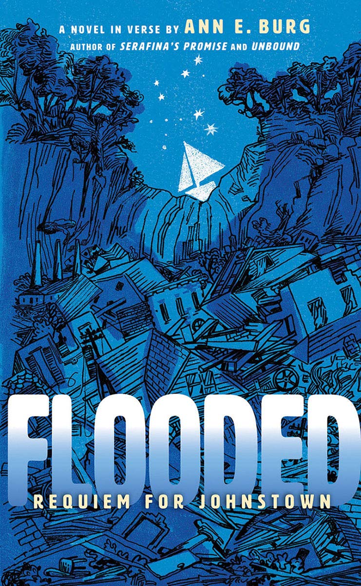 Gr 4 Up–In 1889, Johnstown, PA, was a mix of Civil War veterans, immigrants, and coal and steel miners, whose families and children were looking toward the future. Everyone was planning for Decoration Day. Little Gertrude Quinn was thrilled that her older brother had saved her the last flag from their father’s store. William James was madly editing his first original poem, which he would recite in front of the entire town, and Joe Dixon planned to propose to his sweetheart Maggie. Through the rain, flags waved, songs were sung and the veterans parade filled the town with both pride and strength, but the rain kept coming. Within a few hours, Johnstown and its residents would never be the same. Stunning, significant, and sorrowful, Burg’s requiem melts history into prose. Brimming with sensory imagery and cadence that breathe life back into the disaster, this novel in verse serenades readers with multiple, yet personal, voices who illuminate daily life in Johnstown before and after the historic flood. Readers will quickly form empathetic connections with real-life characters. Through significant research and written testimony, Burg provides insight to the aftermath and unearths South Fork Dam’s faulty structure and the liability of its prestigious Fishing and Hunting Club. The novel’s artistry makes use of faded typeface to give voice after death to main characters as well as anonymous victims. Budding historians will be intrigued with new perspectives on prominent figures, such as Clara Barton, Andrew Carnegie, and Henry Clay.