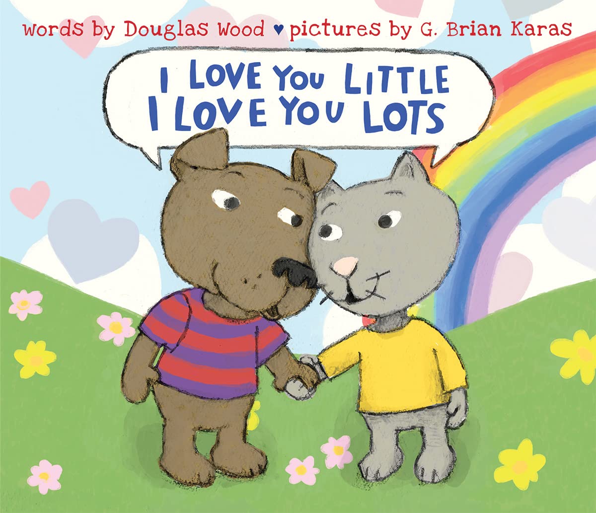PreS-K–A wonderful exploration of friendship, Wood’s picture book offers a wealth of wordplay and rhyme. Opposites, such as “little” and “lot” are juxtaposed to emphasize the range of the love being expressed. Amounts that could fill buckets and cake pans, or a love so large it could reach miles are also described. Comparisons, similes, and amusing adjectives work together in the affectionate banter between the characters. Pencil and digital media illustrations support the playful text. The two friends (a cat and dog) board a train; one speaks from the engine, while the other answers from the caboose. Readers also see them swim at the beach, fly kites, and enjoy a sunset picnic as they describe their bond. The font developed from Karas’s own hand-lettering is a personal touch that matches the cozy mood of the book.