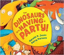 PreS-Gr 2—Jones's signature wit shines in this picture book that features an eager and unsuspecting young lad invited to the dinosaurs' dinner party. The "Special Guest" arrives wide-eyed and bow-tied with a gift and his canine companion, whose immediately wary expressions clue readers in to the trouble afoot. Amid party games, a bouncy castle, and an overflowing buffet table, the guest of honor naively wades through the gathering, even past Chef Alfonsaurus preparing the grill outside, with nary a clue of the fate about to befall him. When T. rex lets out a terrible roar that finally scares the boy off, the boy grabs a party bag on his way out, which turns out to be something else altogether, setting the stage for the tantalizing ending that raises the question "What next?" The rhyming text falters at times, but this does not detract from the fun. The playful use of fonts and text placement add to the party atmosphere. Details in the full-color, cartoon-style illustrations provide visual hints that establish the dinosaurs' intentions and add to the age-appropriate humor of this story.—