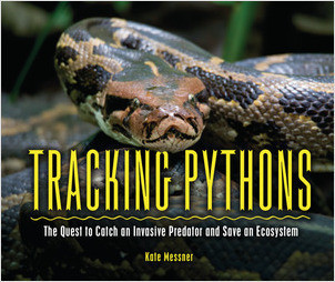 Gr 4-8–Ever dreamed of wading through bushes and vines in search of an 11-foot snake, specifically a Burmese python? This book takes readers into the thick of South Florida’s fragile ecosystem and follows scientists on their mission to study and help control the population of this invasive species. It is predicted that as many as 300,000 of these snakes live in the wild, where they are wreaking havoc on the native population. Messner has collected wonderful diagrams and photographs to help illustrate the importance of the work of these scientists. The layout provides sidebars that discuss topics such as a python’s body structure, how the scientists’ tracking system works, and “How to Catch a Python.” The book is broken into seven chapters. Each focuses on a particular aspect of the scientists’ process and research methods. One series of photographs shows a snake and its last meal—a full-size deer. An extensive bibliography and suggested further reading are included.
