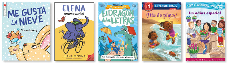 Kids will encounter bicycle-riding elephants, words-loving dragons, and a fun day at the beach in these Spanish-language books for transitional readers.
