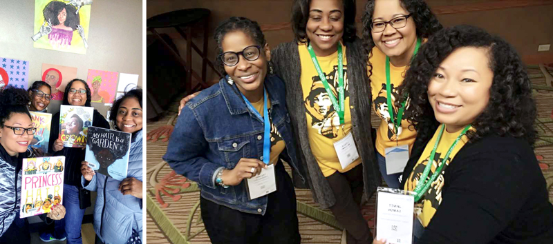 The founders of the organization Afros and Books hosted "Reading my World: Diverse Books for Birth to 8," a packed session at the Rocky Mountain Early Childhood Conference in Denver, CO, last week. Presenting Colorado librarians included (left photo, l. to r.): Janet Damon, library services specialist, Denver Public Schools; Taliah Abdullah, library manager, Arapahoe Public Library; Hong Ha, senior librarian, Denver Public Library (DPL); and Leslie Williams, DPL senior librarian. Right photo: Abdullah, Williams, Ha, and Damon.