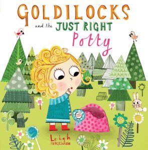 Toddler-PreS –Hodgkinson gives readers another “Goldilocks” work (Goldilocks and Just One Bear) in the form of a humorous fractured fairy tale geared toward toddlers who are beginning to toilet train. “Goldilocks was tired of wearing soggy diapers so she decided it was time to wear big girl underwear.” But just like any story involving Goldilocks, she can be rather fickle about finding the perfect item. Once she decides which underpants are “just right”, she moves on to look for her “just right” potty. She has to explore all of her options, including a large boot and a tiny teacup, before choosing the right one. The story touches on the idea that potty training takes some time, and that accidents can happen but that with persistence, success will be achieved. Mixed-media art, including watercolors, collage, and ink drawings complements the fun and lighthearted story, and even cleverly inserts Goldilock’s friends, the three little bears, as they sleep outside a dollhouse. VERDICT Recommended for picture book collections, this is a fun and engaging tale. Parents and children will delight in the humor and familiarity.