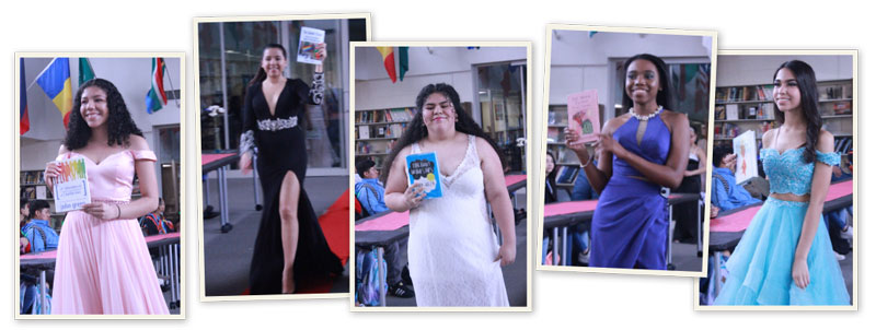“Short and sweet—that’s the cool, summery look of the cover of the novel Sequins, Secrets, and Silver Linings. Get the book to add the finishing touch to your look!” That was our student MC describing a model at our standing-room-only Prom Book Fashion Show, where students walk the runway holding a book. Our students haven’t always felt excited about the prom. Many are from countries where proms aren’t part of the culture. I came up with the fashion show idea while brainstorming ways to promote the prom… and reading. It combines two of my favorite things—books and fashion! Here are tips to plan your own.