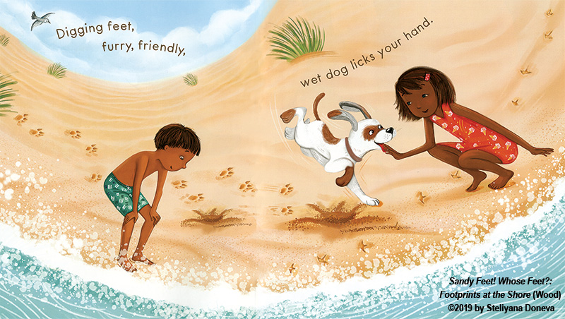 Wood, Susan. Sandy Feet! Whose Feet?: Footprints at the Shore. illus. by Steliyana Doneva. Sleeping Bear. Apr. 2019. p. 96.
