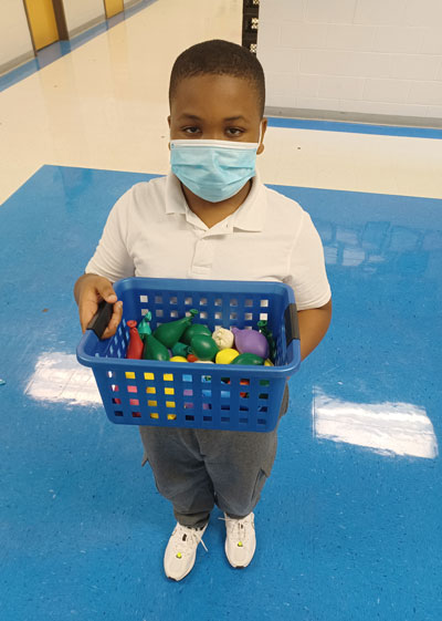 Students at Fall-Hamilton Elementary made stress balls from rice and balloons for staff. |