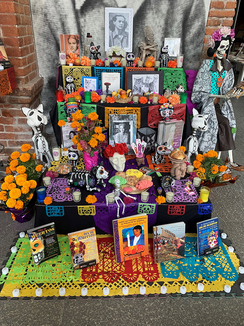 Día de los Muertos is celebrated on November 1 and 2. A holiday to honor the dead, families create offerings to honor family members who have died. SLJ contributor and former editor Daryl Grabarek sent this photo of a Day of the Dead Book Display at Centro Cultural Elena Garro in Mexico City. Garro was a novelist, journalist, and screenwriter, and the wife of poet and Nobel Prize winner Octavio Paz. The center contains a "spectacular bookstore" of kids & adult books, as well as meeting and performance areas, according to Grabarek. |