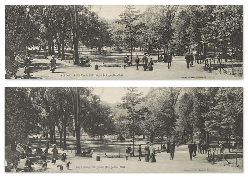 Cathy Collins uses historical photos of nearby Boston Commons, altering one and asking her