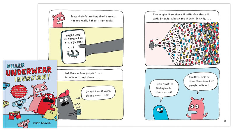 Casieri explores mis- and disinformation—and the motives behind them—with her sixth graders, sparking the conversation by reading aloud Killer Underwear Invasion: How To Spot Fake News, Disinformation and Conspiracy Theories by Elise Gravel.