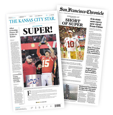 Looking at news after a sporting event like the Super Bowl can show how coverage may differ depending on the location of the news organization.