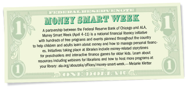 The American Library Association (ALA) promotes several resources for libraries to enhance their financial literacy offerings, including webinars, collection guides, and programming for those who want to partner with ALA and the Federal Reserve Bank of Chicago for Money Smart Week (April 4–11). All of these have helped “open a dialogue” with patrons, says Lisa Fipps, marketing director at Kokomo-Howard County (IN) Public Library. Still, while learning about savings, credit, interest, and financial products is vital, Fipps says, “people don’t like to talk about money.”