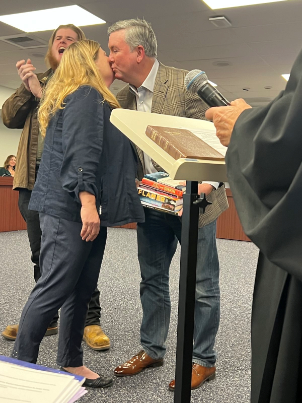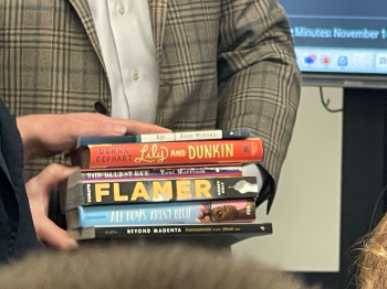 In reality, an off-hand comment in a group text—and nearly two years of fighting for students in the district to have access to books—led to the moment and image that lit up social media feeds after the December 4 ceremony.