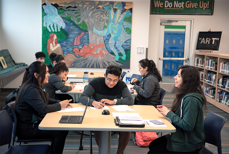 The three schools on the KIPP Cevallos Campus serve majority low-income and Latinx populations. Constructed in 2016, the facility provides ample room for library space in each building. In the high school, KIPP University Prep, certified librarian Jennifer Martinez sees library science as critical to the school’s college preparatory mission.