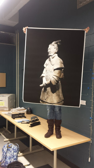 Promoting student expression, especially through artwork, is one of the most important things at our library. In order to implement that, we had students submit photographs or other 2-D art to be enlarged. Our enlargement method is the engineer print, which is similar to a blueprint. These cheap prints can come in black and white or color. The company we are currently using is Parabo Press, an online store connected to PhotoJojo. We love working with Parabo Press because of their discounts and flexibility with schools and billing. We submit student pictures, many of which are taken with iPhones, and they come back as huge, beautiful, and vibrant prints. There can be some fuzziness and pixilation when viewed up close, but it’s hardly noticeable when put up on a wall. However, when we can, it is nice to get high resolution photographs, (preferably a 300 dpi image), before we enlarge.