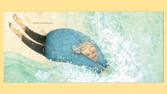 Pictured: "Two-Page Spread of the Year": Swashby diving from Swashby and the Sea, illustrated by Juana Martinez-Neal
