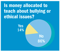 AN ETHICS DISCONNECTIf money talks, it’s tough to tell if schools really value ethics and digital citizenship. Less than five percent of LMCs set aside funds for digital-citizenship speakers or programs. Elementary school libraries (5%) were a little more likely than middle and high schools (3% each) to promote these programs. Private school LMCs (19%) were much more likely to allocate fund to teach ethics and digital citizenship than those in public schools (about 3%).
