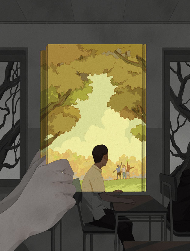 Illustration and SLJ May 2025 Cover (below) by Dion MBD |