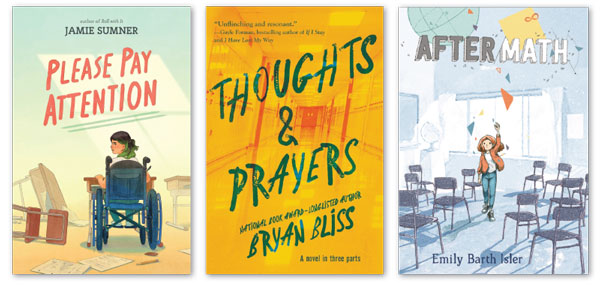 That’s where books can help. Middle grade and YA authors are stepping in, taking close looks at how these shootings affect survivors, friends, teachers, siblings, and parents. The stories—which show the personal and community impacts, how survivors move forward, and how young people process the violence—can encourage conversations, understanding, and maybe even action.