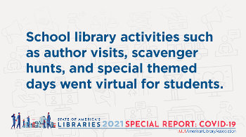 April is also School Library Month, and the report highlights how school libraries pivoted during school closures to not only serve student learning, connectivity, and reading help, but their social and emotional needs. “We wore a lot of hats during this time,” said Carroll. “We were there for the students, making them feel secure—the read alouds, or just checking in every day for a bingo game or doing whatever it took to give them some sense of normalcy—while also focusing on the educational aspects.”