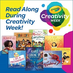 Crayola Creativity Week includes hands-on daily activities and video events involving what Sterman calls “an amazing lineup” of celebrity creators reading books aloud and then doing artwork inspired by the story. For instance, musician Ziggy Marley will be reading the picture book he wrote, Music is in Everything, and an