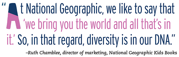“Our commitment to diversity cuts across our entire list,” says Ruth Chamblee, director of marketing for National Geographic Kids Books. “It’s important that we publishers are very intentional about bringing more authors and illustrators of color onto our list. We want to make sure that kids see themselves reflected in our books. So, we strive to showcase diversity whenever possible, whether that’s through characters, subjects, illustrations, photos, or the author voices.”