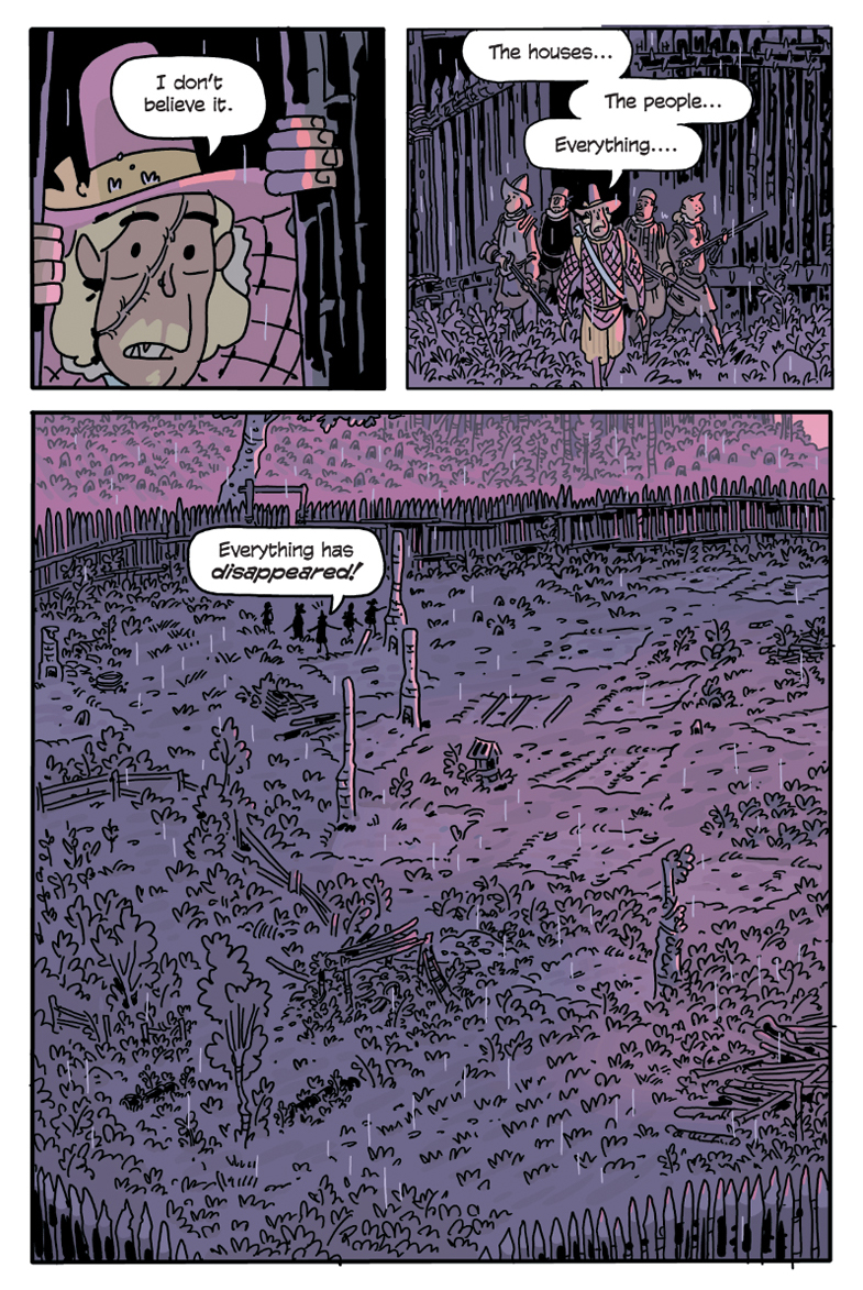 A panel from the upcoming graphic novel History Comics: The Roanoke Colony Mystery by Chris Schweizer (6/30/20) |