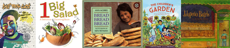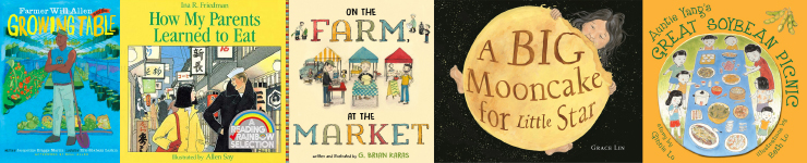 Edible Colors: See, Learn, Eat Jennifer Vogel Bass Bread Lab! Kim Binczewski and Bethany Econopouly Before We Eat: From Farm to Table Pat Brisson Full, Full, Full of Love Trish Cooke Everybody Cooks Rice Nora Dooley Eating the Alphabet Lois Ehlert Growing Vegetable Soup Lois Ehlert How My Parents Learned To Eat Ina R. Friedman Bring Me Some Apples and I’ll Make You a Pie: A Story About Edna Lewis by Robbin Gourley Princess and the Peas Rachel Himes Let's Eat: What Children Eat Around the World Beatrice Hollyer On the Farm, At the Market G. Brian Karas No Kimchi for Me Aram Kim Pie Is for Sharing Stephanie Parsley Ledyard A Big Mooncake for Little Star Grace Lin The Ugly Vegetables Grace Lin Auntie Yang's Great Soybean Picnic Ginnie Lo