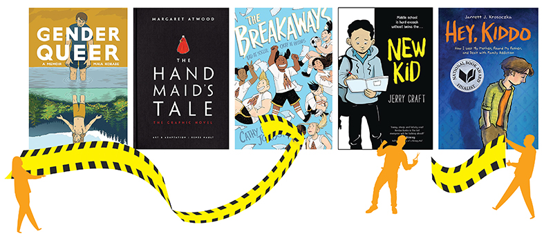 Whether in officially filed challenges or during speeches at school board meetings, parents and organizations nationwide have brought objections to Jerry Craft’s New Kid, Jarrett Krosoczka’s Hey, Kiddo, Cathy Johnson’s The Breakaways, and the graphic adaptation of Margaret Atwood’s The Handmaid’s Tale. Often, news of one book’s challenge spurs a new one somewhere else.