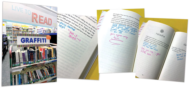 One school library's Graffiti Books program lets students connect and have "conversations" by writing in books. It also keeps some previously weeded titles in the stacks.