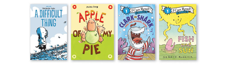 Publishers and creators have taken a wide variety of approaches to early reader graphic novels, including series and stand-alone books, adaptations and original works, and leveled readers. The latter is a significant category that includes HarperCollins’s I Can Read Comics, Simon & Schuster’s Little Simon Graphics and Ready-to-Read Graphics, and Holiday House’s I Like to Read Comics. Some are adaptations of existing early reader books and characters, such as Scaredy Squirrel and Clark the Shark, while others are completely new.