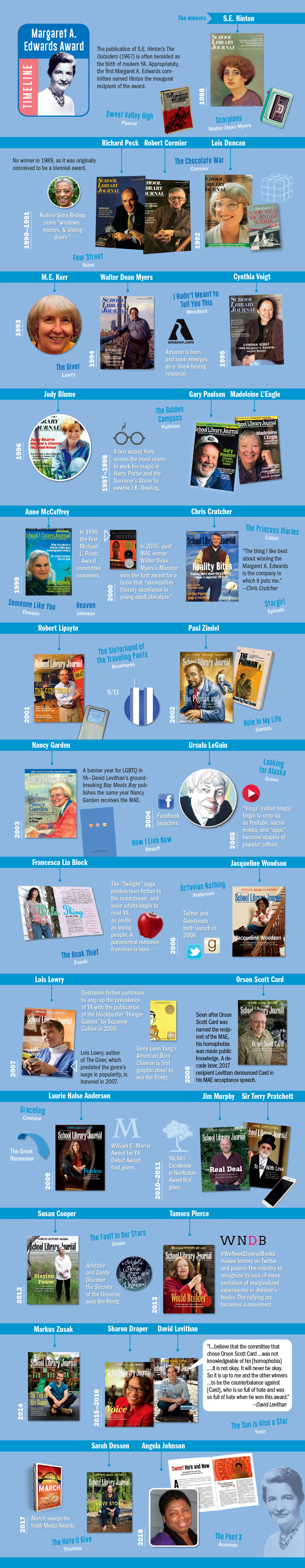 Download this nifty visual and chronological representation of the history of young adult literature and the Margaret A. Edwards award in the context of literary, economic, and political milestones.