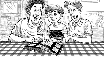 “Michael is very comfortable in his own skin,” Klas says. “Jeremiah is still exploring his own identity and is just learning how to be comfortable with who he is.” Although he’s embarrassed at first by Michael, Jeremiah soon learns what it means to be a family—and that families can take many forms.