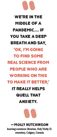 “I had a kid ask, ‘Why did China send us the coronavirus?’ and I walked them through how viruses work and where it was first detected formally,” Hutchinson says. “I explained that you’ve got to be careful with what you believe, because [misconceptions] can be really harmful.” The student’s assumption “touches on racial bias, and with such a diverse school population, I’m not about that.”