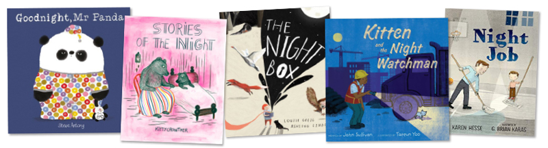 These picture books address the sights, sounds, and seeming magical things that happen when night falls.