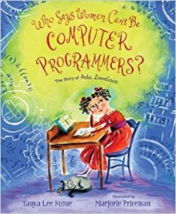 STONE, Tanya Lee. Who Says Women Can’t Be Computer Programmers?: The Story of Ada Lovelace. illus. by Marjorie Priceman. 40p. bibliog. notes. Holt. Feb. 2018. Tr $18.99. ISBN 9781627792998. POP