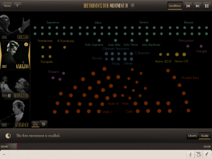 When considering Ludwig Van Beethoven’s 9th Symphony (Touch Press / Deutsche Grammopon), you’ll be tempted to go for the free app, but don’t do it; it’s the best kind of worst tease. Instead, purchase the full version, but you’ll need to decide: phone app ($7.99) or iPad app ($13.99)? Don’t skimp. The phone app has all the music of the iPad app, but lacks the commentaries of the experts. Your last consideration will be the listening options; the app states, “BEST WITH HEADPHONES.” Trust me, it is.