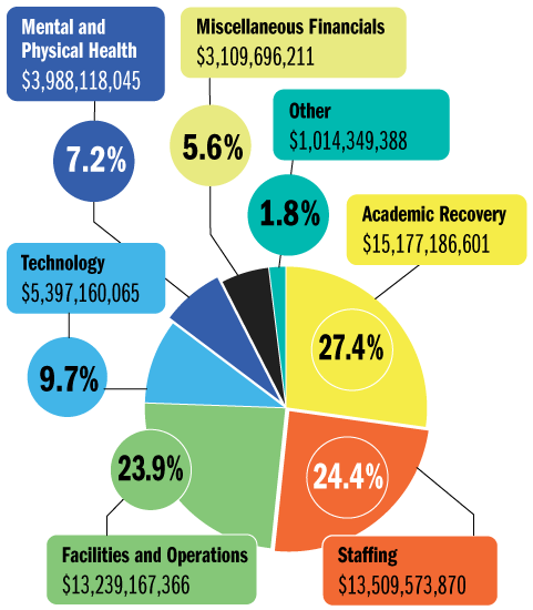“Districts were asked to categorize their spending, and so far it’s not been super conclusive if they are spending it on just one thing,” she says. “Obviously we are seeing hiring, we are seeing spending on instructional materials and on facilities, and things like improving HVAC systems.”