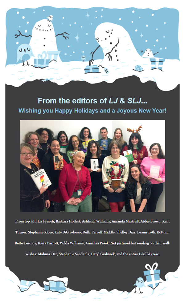 Holiday Greetings from the reviews editors of Library Journal and School Library Journal.